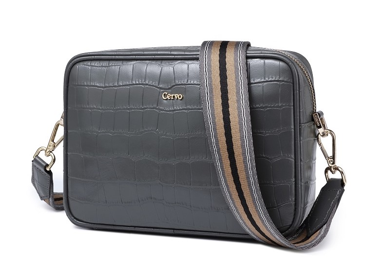 Description: Croc Embossed Leather Zip Camera Bag With 2 Changeable Shoulder Straps Slip Pocket On Back, 1 Large Slip Inside Pocket And Zip Pocket